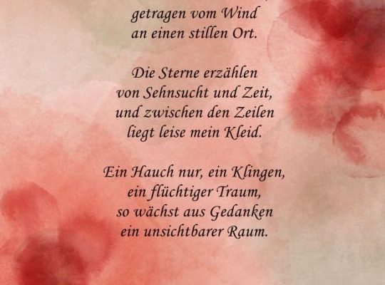 Poesie zwischen den Zeilen Im Flüstern der Nacht verliert sich mein Wort, getragen vom Wind an einen stillen Ort. ~ Die Sterne erzählen von Sehnsucht und Zeit, und zwischen den Zeilen liegt leise mein Kleid. ~…