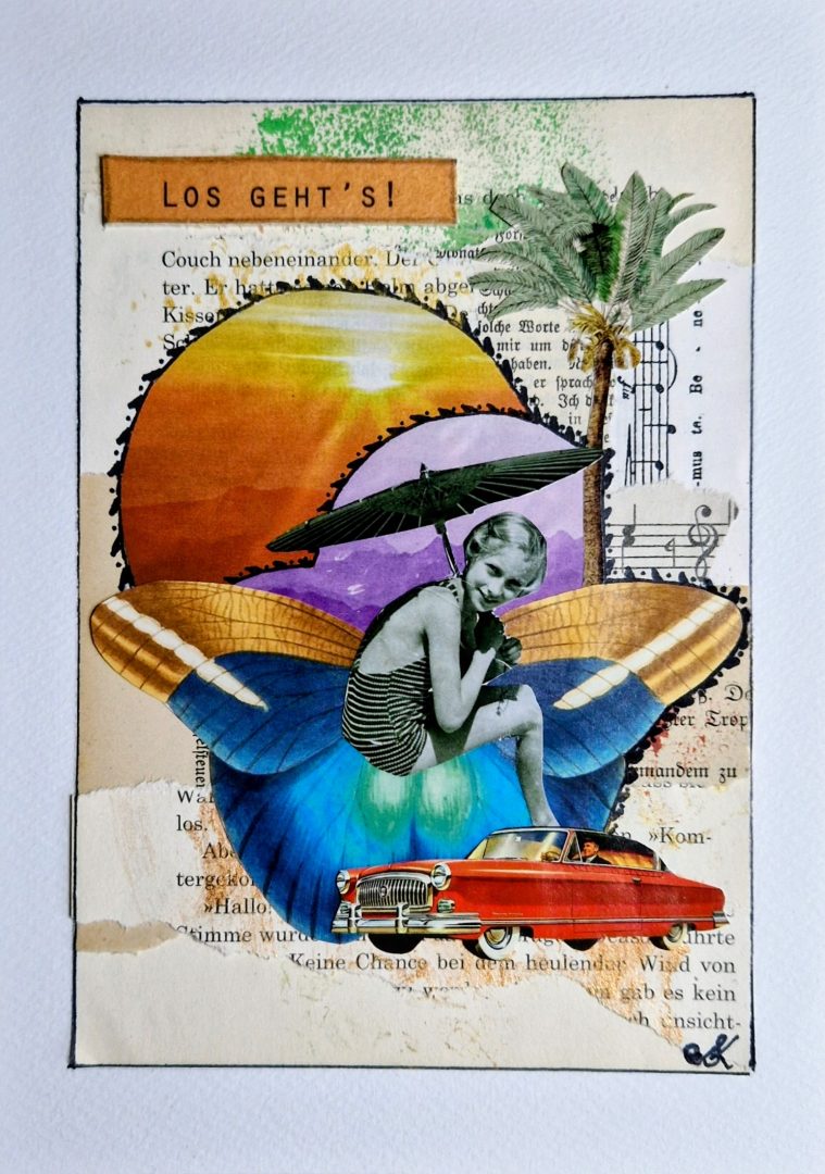 #collage bestehend aus #buchseiten #zeitungsschnipsel #postkarte #notenblatt #collageart #collage_creatives #magazincollage #collageartwork #collageartist #collagebywoman #instaart #fürmehrleichtigkeit #art #sabinepoulou #losgehts