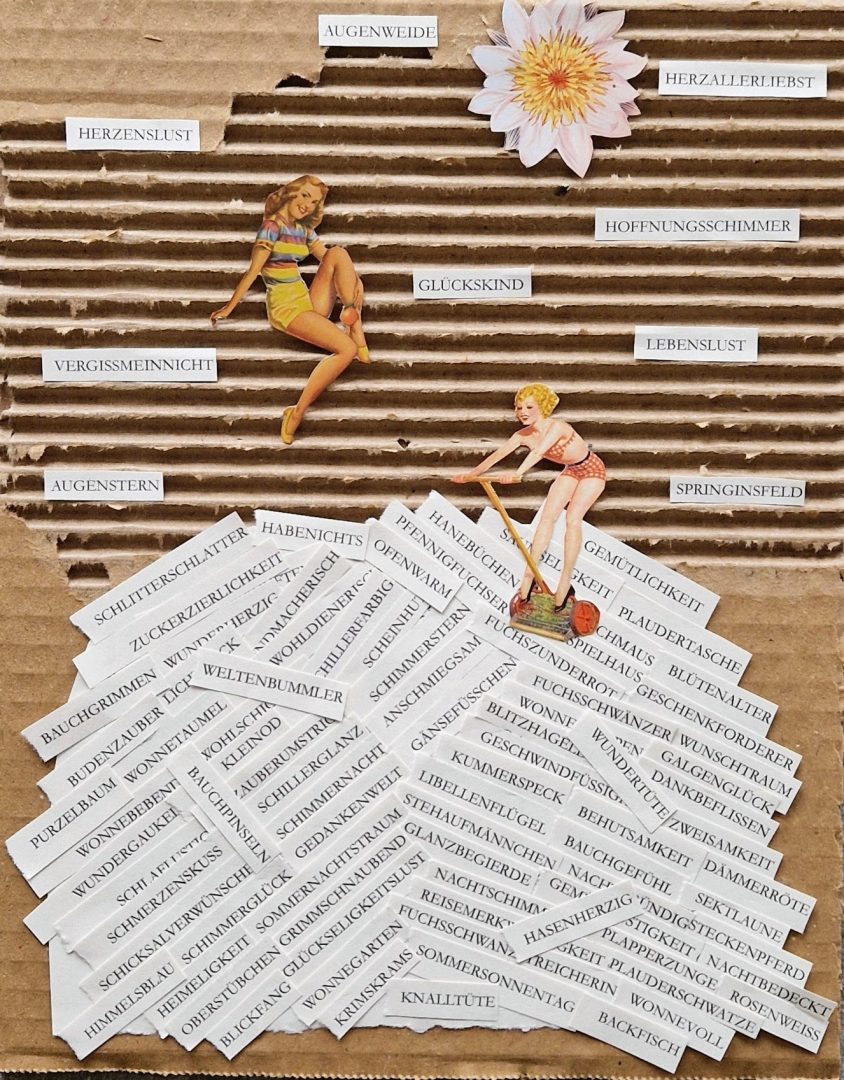 #collage bestehend aus #kartonage #buchschnipsel #buchseiten #zeitungsausschnitte #collageart #collagebywoman #instaart #fürmehrleichtigkeit #art #collage_creatives #collageartwork #sabinepoulou #wenndirmaldiewortefehlen